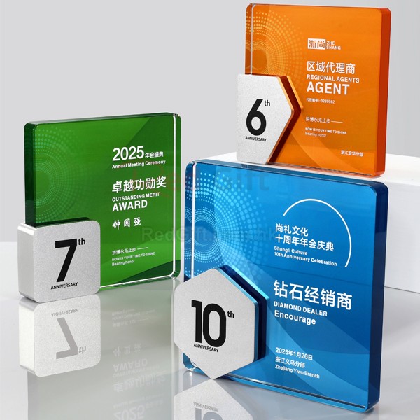 | 水晶獎座:水晶獎座有著水晶晶瑩剔透的優勢,手感細膩,還可以刻字,紋圖案,造型也基本可以達到金屬獎座的形狀。製作水晶獎座大致可分為選料、開料、壓胚、粗拋光、細拋光、打孔、鍍彩、雕刻、噴砂、包裝十個步驟。水晶獎座的雕刻工藝可分為平面雕刻和鐳射內雕。另外,基於訂製水晶獎座材質的特性,在運輸包裝與保養方面也有講究。 |
