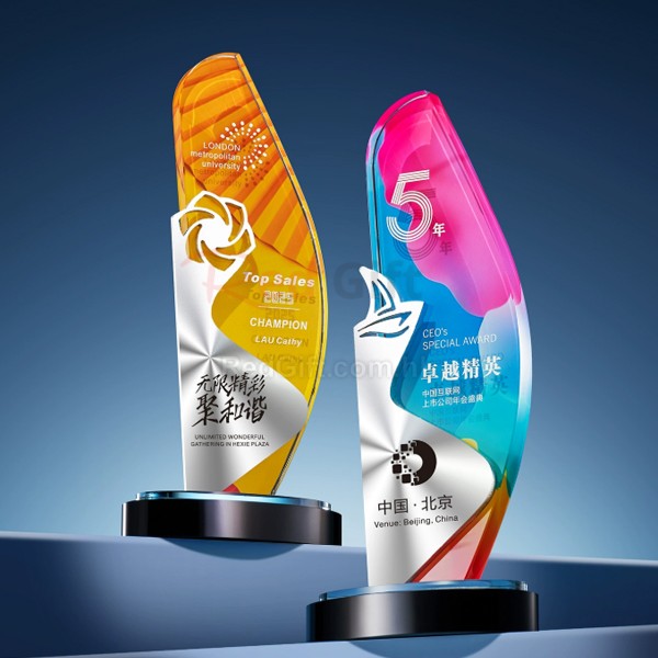 | 隨著水晶禮品的不斷流行和深受大眾喜愛,水晶獎座也逐漸在眾多材質的獎座中脫穎而出。水晶獎座有著水晶晶瑩剔透的優勢,手感細膩,還可以刻字,紋圖案,造型也基本可以達到金屬獎座的形狀(水晶獎座全是有幾何圖形拼合而成,不像金屬獎座可以開模鑄造,所以太抽象的造型做不出來),用水晶獎座作為獎品是最好的選擇。 | ||||||||||||||||||||
