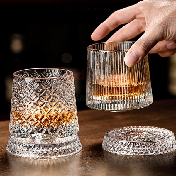 Whiskey Rotating Glass Cup Set: suitable for Bourbon, Scotch Whiskey, Vodka, Cocktails, Tequila, Gin, Cognac, Rum, Red wine and Beer, etc., also It can be used to hold juice, iced tea and other beverages. Very suitable for parties, bars, restaurants and families.